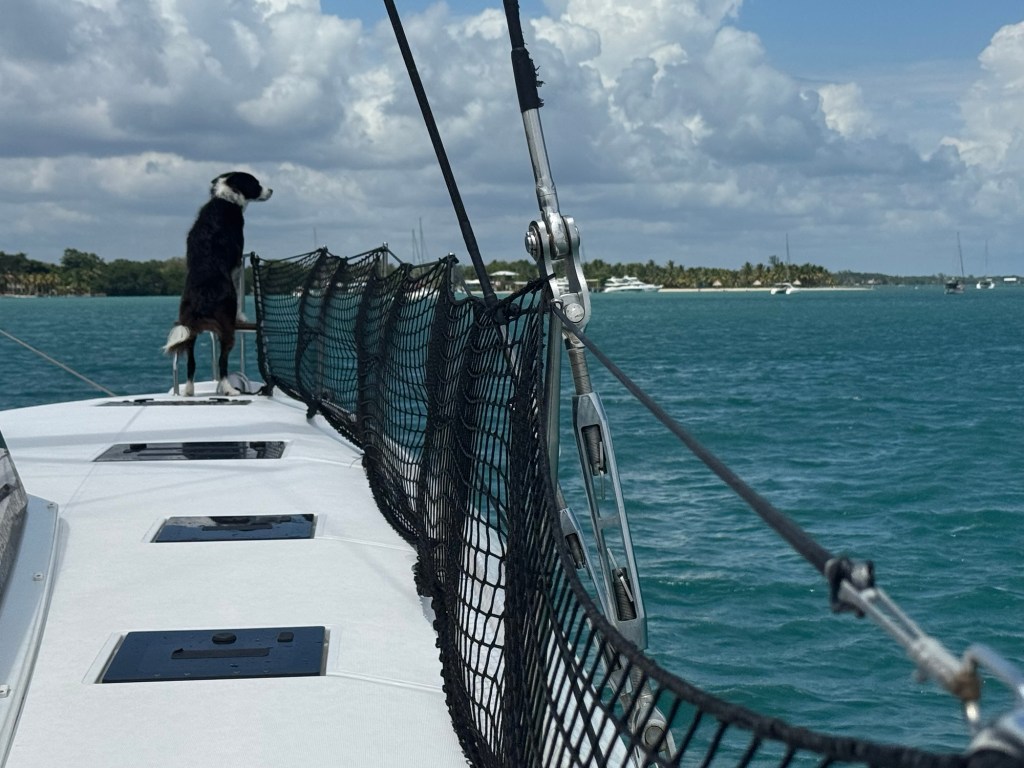 Saying by to the Dominican Republic First sign of land 😎Sequoia making sure all is clear as we come in to anchor. Very nice dingy dock at Placencia Belize