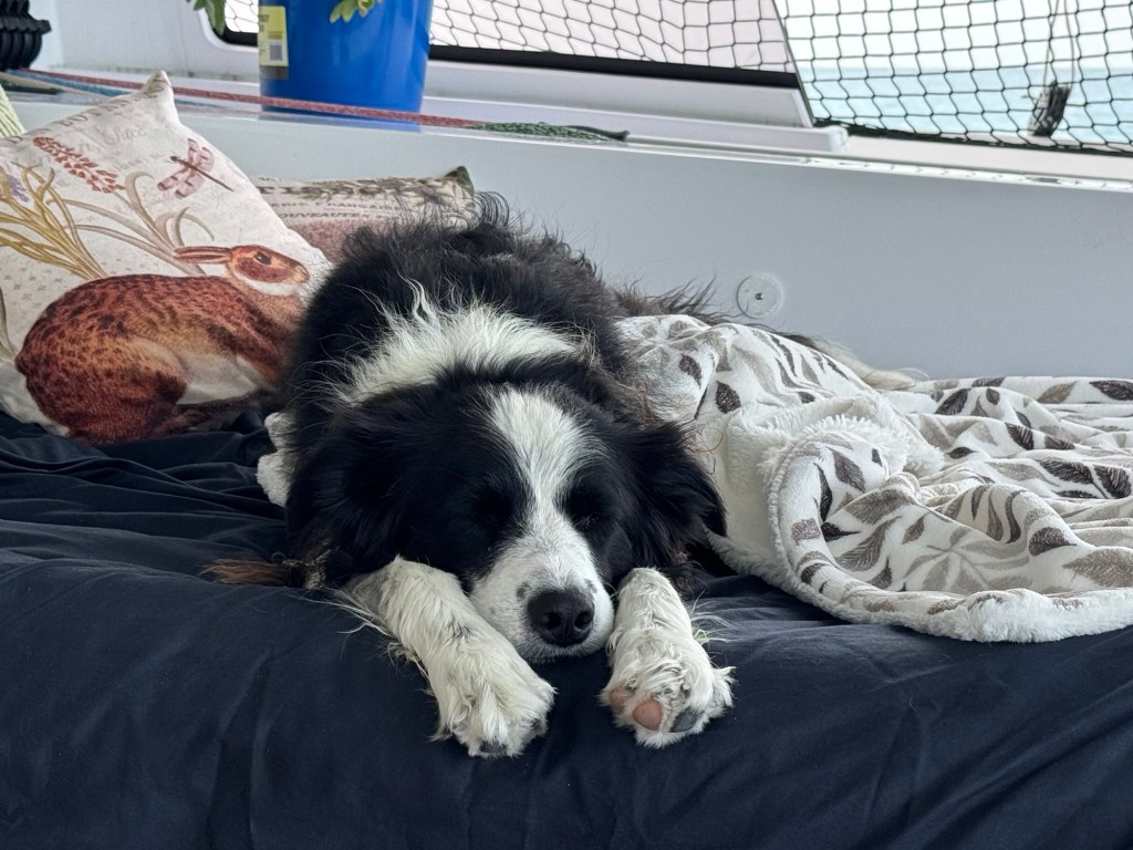 Kona accompanied us on the previous trips, and now Sequoia joins us. It took her a bit to get used to the boat, doing her business, the motion, lack of traction on hard surfaces, but she has all that figured out now and is very comfortable on board.